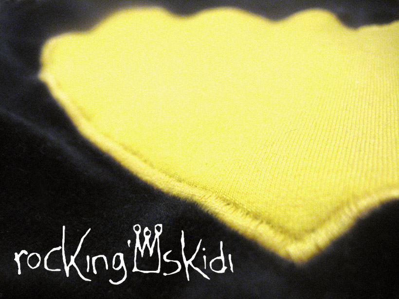 Sydämen muotoiset "paikat" polvien kohdalla ja pepussa ovat keltaista perustrikoota. Täytynee myöntää, että olen ihan keltanokka applikoinnin suhteen ja koneeni on suht surkea applikointeja tehdessä (tosin, voihan se vika olla myös ompelijassa ;) ). Opittavaa on paljon, mutta sen verran makuun pääsin että voi, kun olisi kiva tehdä applikointeja, jos omistaisi siihen sopivan koneen! Jotain oikeaa applikaatiotakin, hahmoja :)